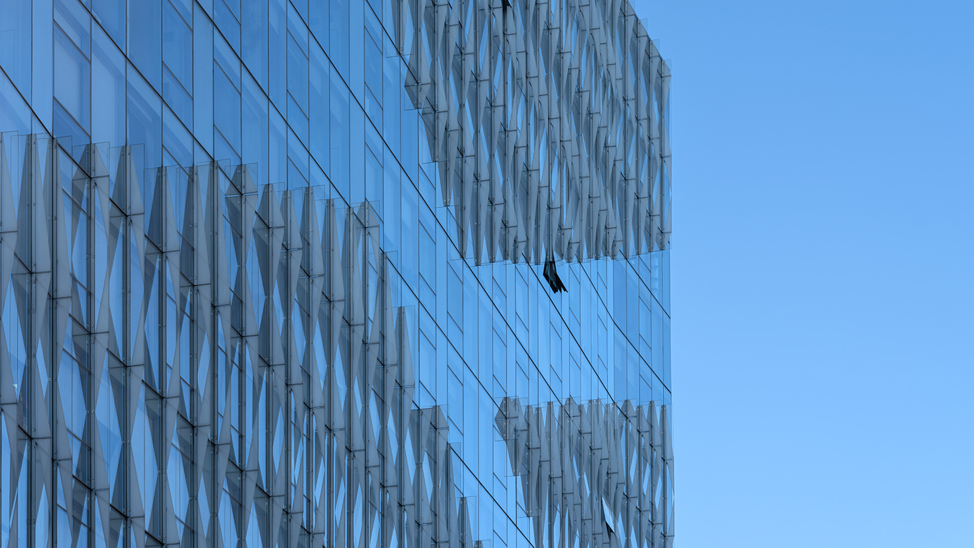 Situated in Brooklyn's most popular and exclusive location in Dumbo, the application of a specially designed Notched Unitized Curtain Wall. Giving the cloud effect on vertical joints of the façade, the application of (1'- 0") deep fritted glass fins, vertically placed. Special application of mirror dot pattern glass with blurring / clouding effect.