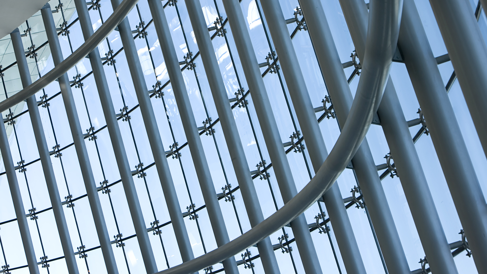 7000 m² of Transparent Façade. The roof soffits all around the terminal building are made of composite panels. Glazing is secured to the steel structure with stainless steel spider fixings.