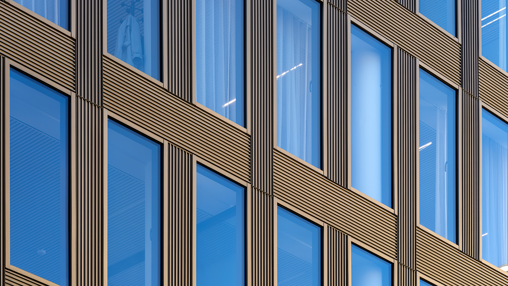 Designed to meet BREEAM Excellent and Brussels Passive 2015 standards, the façade plays a key role in the building’s energy efficiency and environmental performance. A compositional grid system defines the architectural rhythm, while light-colored natural stone respects the historic surroundings. Bronze-toned aluminum elements introduce a contemporary expression.