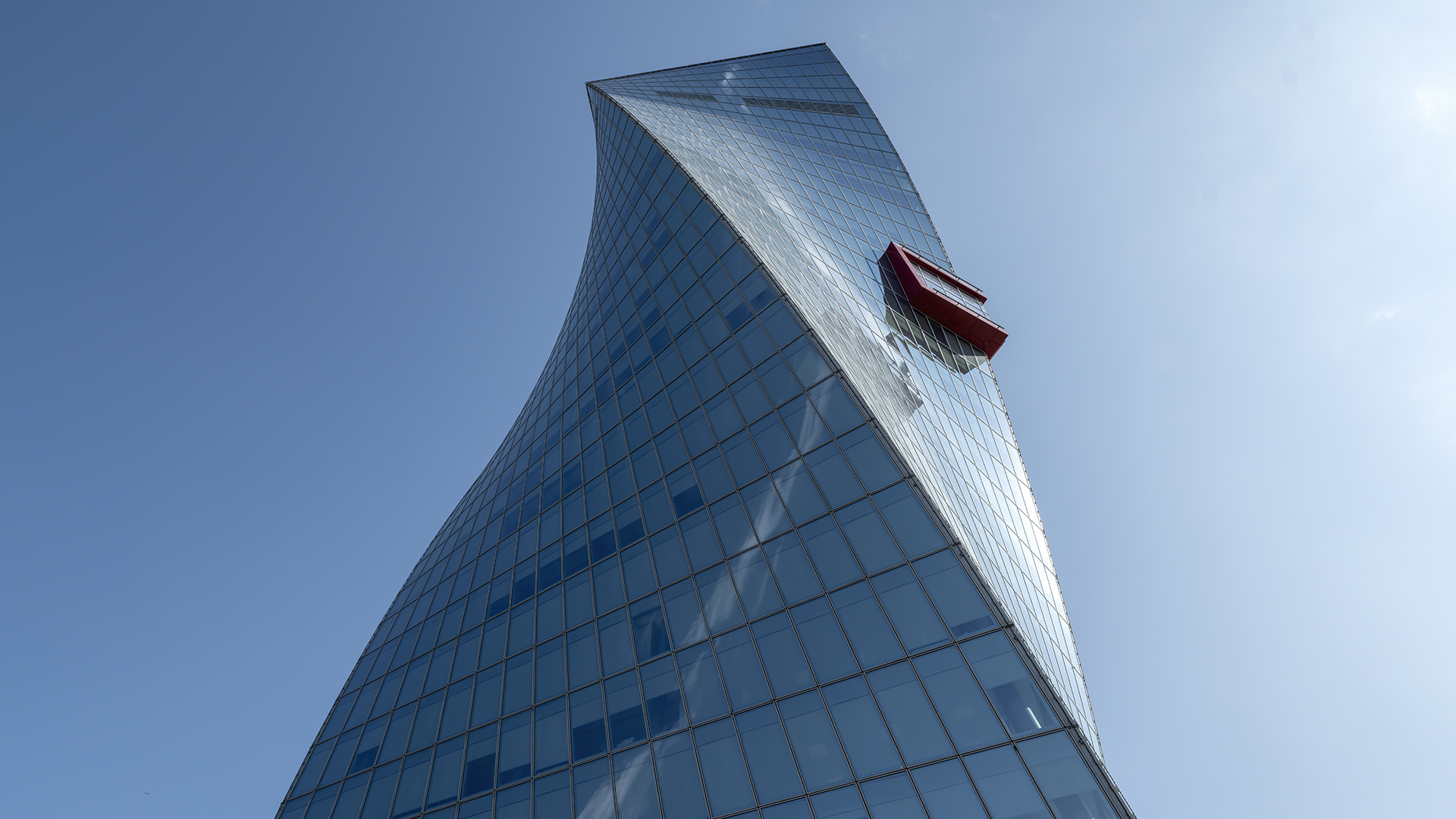 Each floor rotates 2.6° relative to the one below, resulting in a cumulative 90° twist over 33 floors. The façade consists entirely of specially engineered glass panels, inclined up to ±20° inwards and outwards to reinforce the tower’s dynamic architectural expression. A key innovation of the project is the application of cold-bent glass technology, where flat glass panels were elastically deflected up to 70 mm at the corners and fixed into custom-designed frames without compromising structural integrity or optical quality.