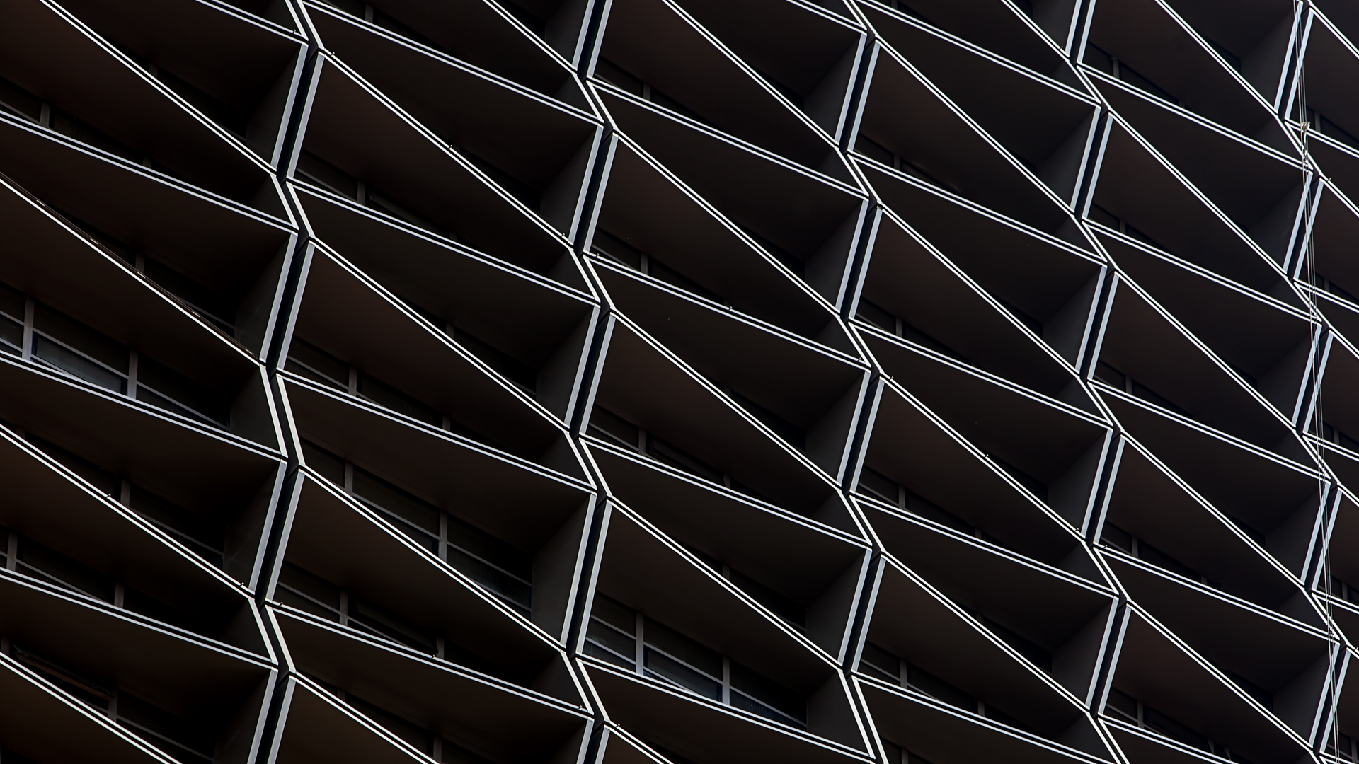 Custom Unitized Panel System with 3 mm thick aluminum fins mounted on the façades.